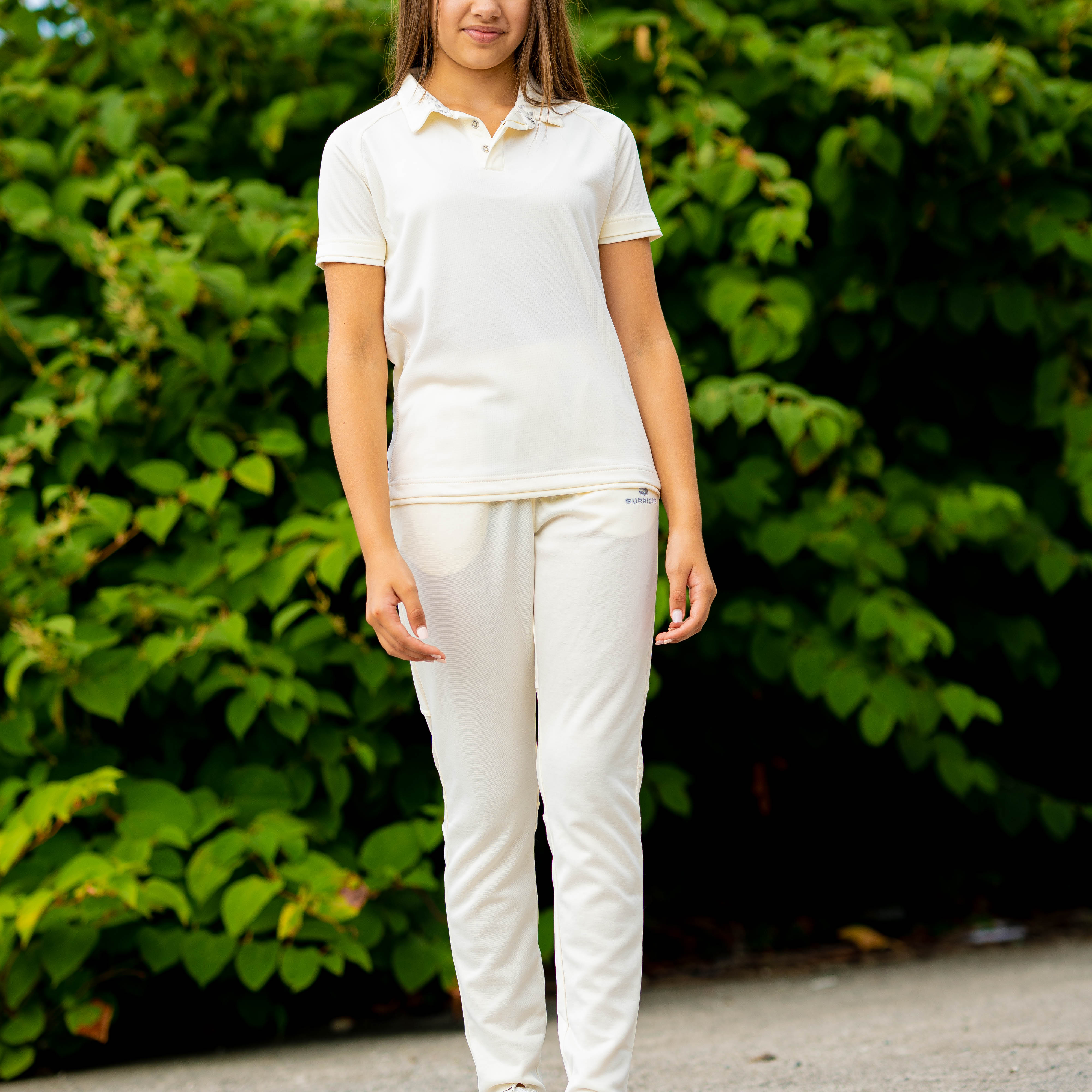 Tek Playing Pant, embroidered ss left leg in silver. Made from a slightly fleecey internal material, with tapered legs from the knee downwards. Comes in an unfinished leg with 2 pockets. Elasticated waistband with draw cord. Specifically designed for he modern women cricketer.